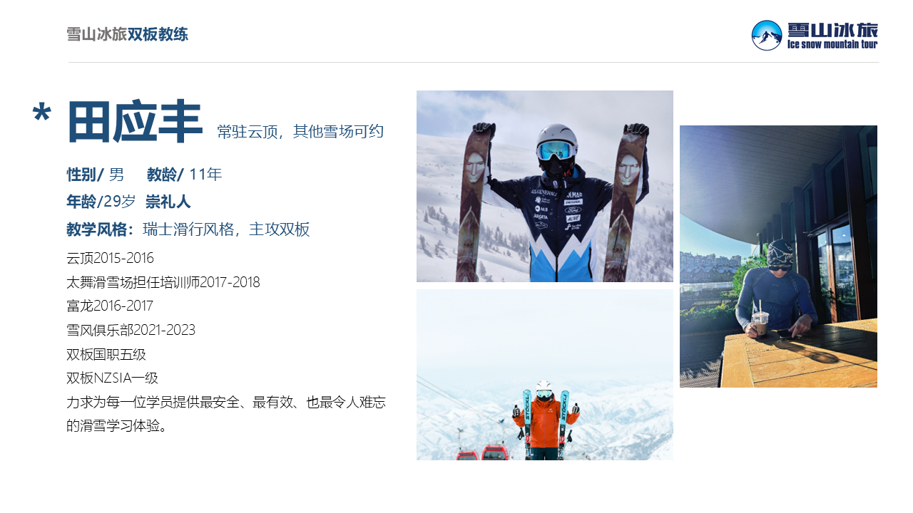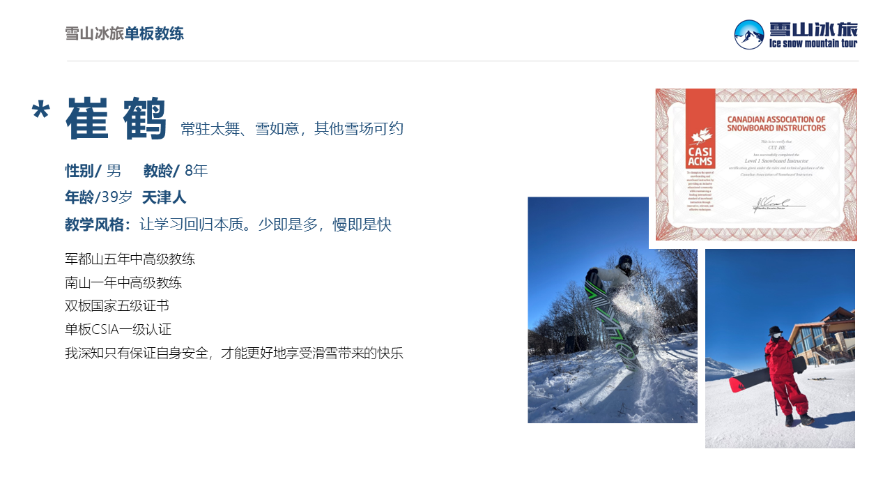 本雪季常驻崇礼10位双板教练与10位单板教练介绍 | |